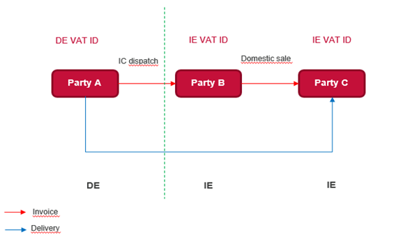 Ein Reihengeschäft liegt vor, wenn mehrere Parteien an der Lieferung der gleichen Waren beteiligt sind und diese von der ersten Partei direkt an die letzte Partei in der Lieferkette geliefert werden (eine Beförderung). Wenn mehr als ein Mitgliedstaat an der Kette beteiligt ist, kann die Identifizierung der "beförderten" oder "nicht beförderten" Lieferung kompliziert werden, da nur ein Schritt in der Kette als befördert angesehen werden kann (und als innergemeinschaftliche Lieferung behandelt wird).